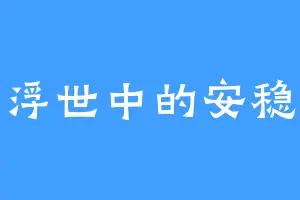 浮世中的安稳
